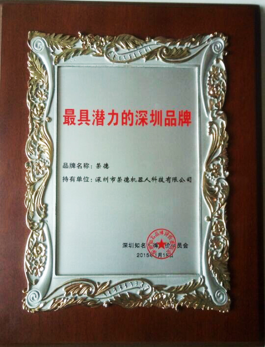 作為行業(yè)內(nèi)唯一獲得深圳知名品牌的深圳本土民族品牌,深圳市榮德機(jī)器人科技有限公司自創(chuàng)立以來,一直非常注重品牌建設(shè)工作,并成功導(dǎo)入卓越績效管理模式,并于2013年獲得了“廣東省名牌產(chǎn)品”的榮譽(yù)稱號,成為行業(yè)內(nèi)第一家獲此殊榮的領(lǐng)軍企業(yè)。借此獲得深圳知名品牌之際,榮德機(jī)器人將狠抓產(chǎn)品質(zhì)量,為響應(yīng)習(xí)總書記三個(gè)轉(zhuǎn)變的重要思想將中國機(jī)器人民族品牌做大做強(qiáng),為振興民族工業(yè)、提升民族品牌、替代進(jìn)口品牌作出企業(yè)應(yīng)盡的努力。