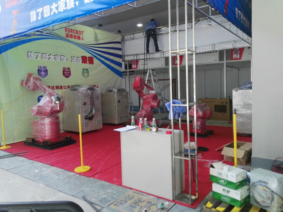 為了展示我們的機(jī)器人,給大家留個(gè)好印象,從決定參加展會(huì)后,就進(jìn)入積極準(zhǔn)備階段,重新設(shè)計(jì)的宣傳冊(cè)等相關(guān)資料。就在昨天,我們的同事不辭辛苦,頂著40多度高溫,前去搭建會(huì)場,現(xiàn)會(huì)場所有東西到到位,噴涂機(jī)器人設(shè)備也已安裝好了,就等您的到來!