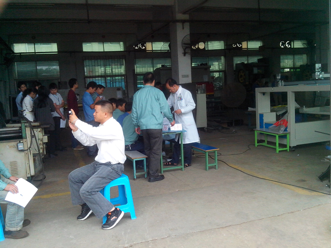 今天公司組織了全體員工的年度體檢活動,把關(guān)愛員工的措施進一步落實。醫(yī)院體檢車直接開到公司對全體員工進行體檢。當(dāng)員工井然有序地排隊抽血、拍片、查血壓等項目時,也深深體會到公司的愛。我們將會銘記公司這份愛,在工作當(dāng)中認真付出,為客戶提供高品質(zhì)、高性價比的噴涂設(shè)備、自動化生產(chǎn)線,最大限度地達到客戶滿意。