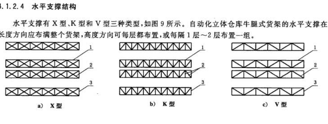 垂直支撐有X型剛性、X型柔性和Z型剛性三種類型,自動(dòng)化立體倉庫牛腿式貨架的垂直支撐在長度方向應(yīng)布滿整個(gè)貨架